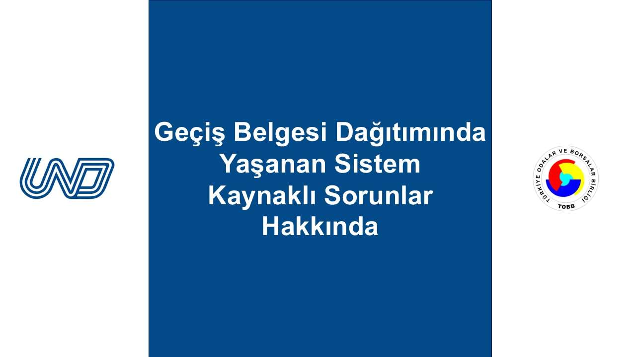 Bu doğrultuda, TOBB a ait sistemlerde dün geceden itibaren yaşanan sorun nedeniyle geçiş belgesi dağıtımı yapılamamakta olup, sorunun çözümü üzerine çalışmalar sürdürülmektedir.