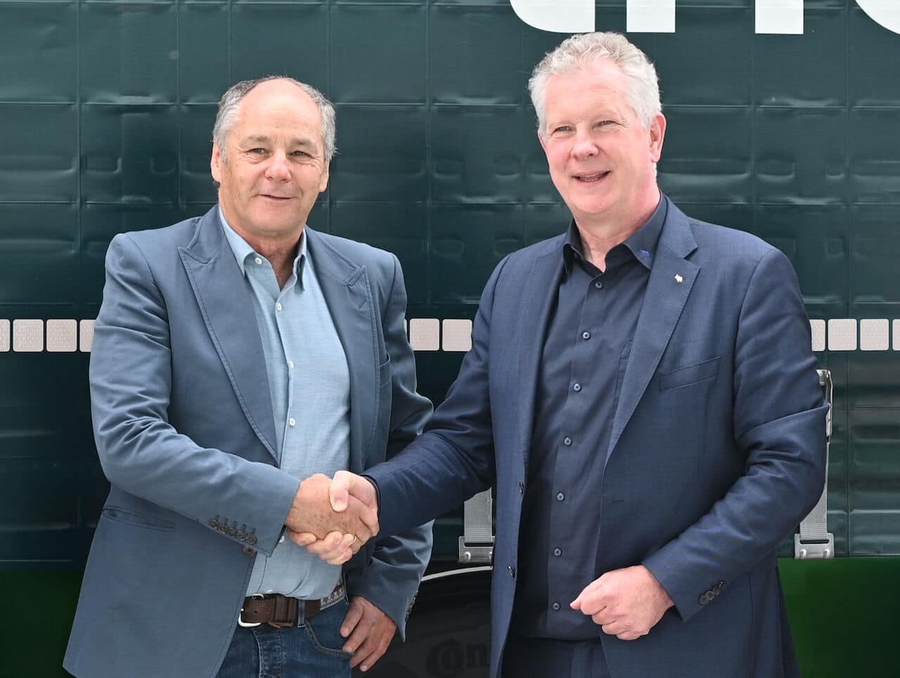 (Soldan sağa): Berger Fahrzeugtechnik ana hissedarı Gerhard Berger ve Schmitz Cargobull AG CEO’su Andreas Schmitz