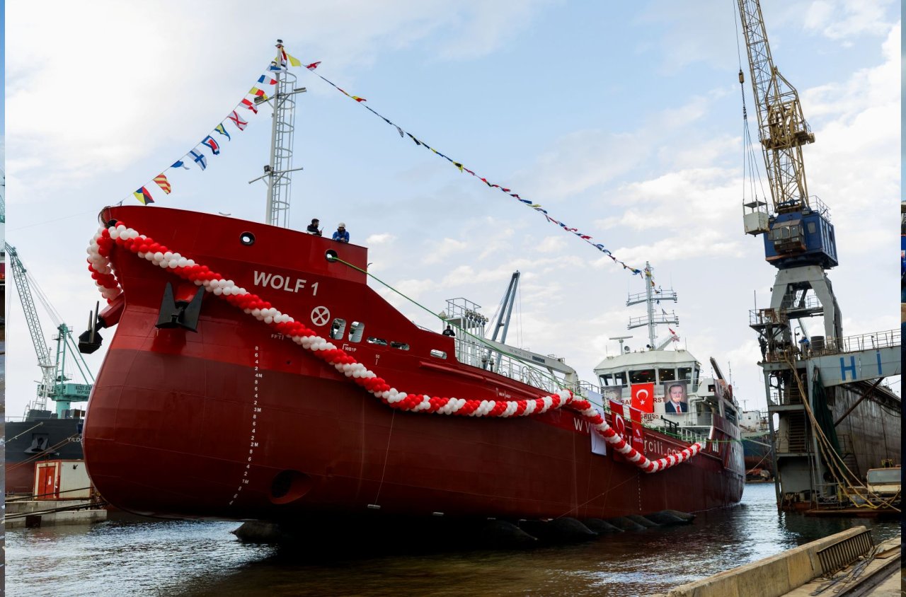 Türkiye nin ilk sıfır emisyonlu akaryakıt tankeri WOLF 1 denize indirildi